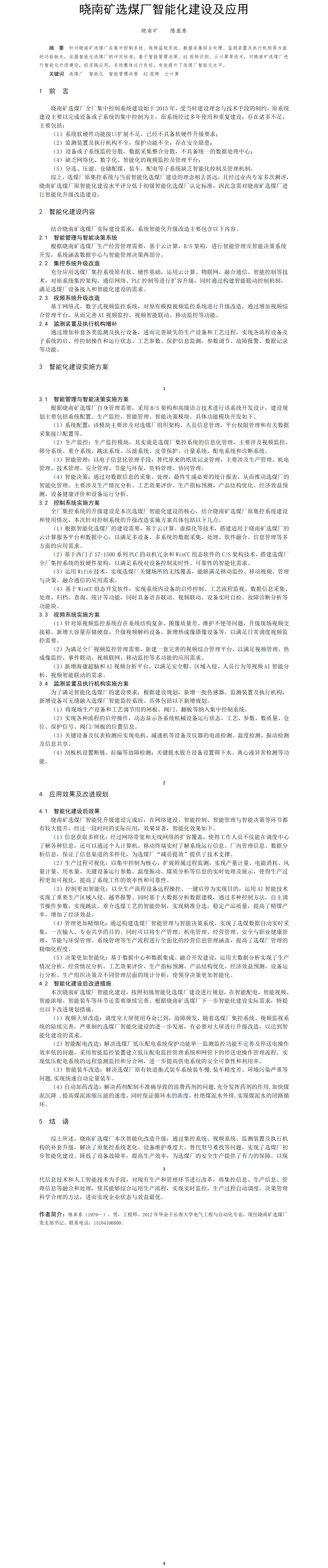 第55屆等級(jí)獎(jiǎng)?wù)撐?--曉南礦選煤廠智能化建設(shè)及應(yīng)用