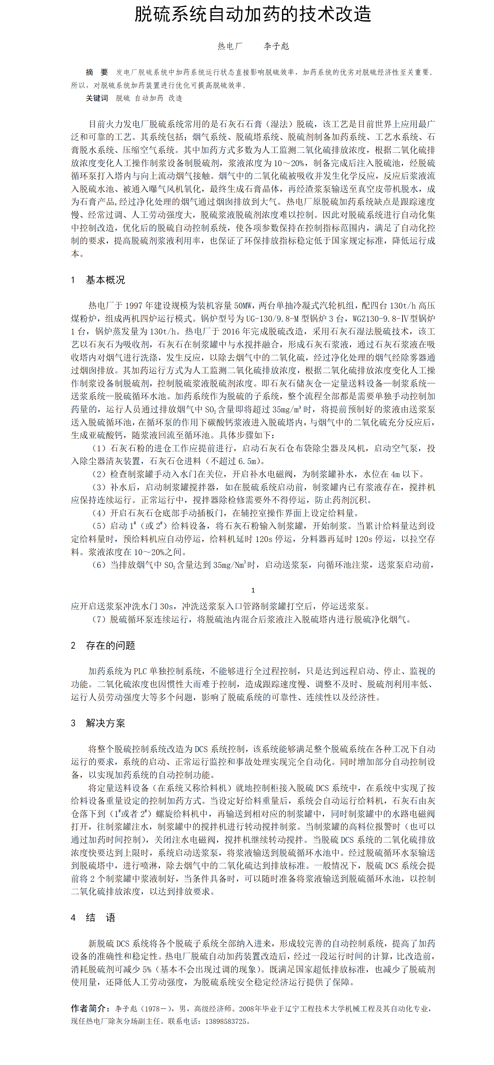 第55屆等級獎論文---脫硫系統(tǒng)自動加藥的技術(shù)改造