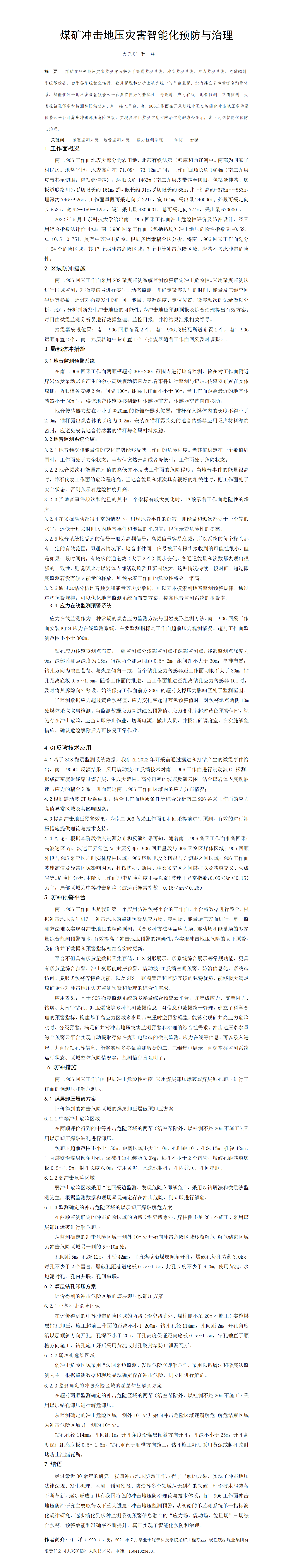 第61屆等級獎?wù)撐?--煤礦沖擊地壓災(zāi)害智能化預(yù)防與治理