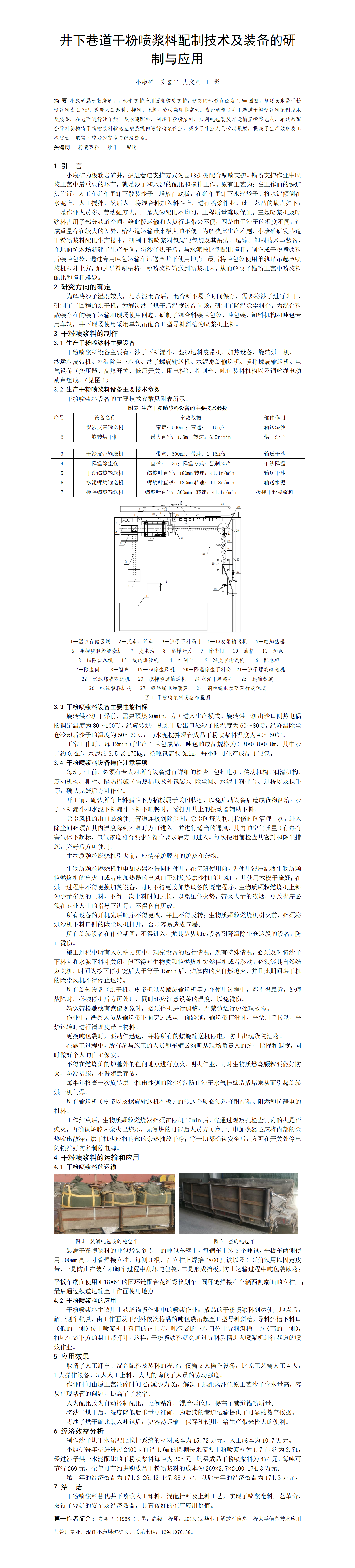 第61屆等級獎論文---井下巷道干粉噴漿料配制技術及裝備的研制與應用