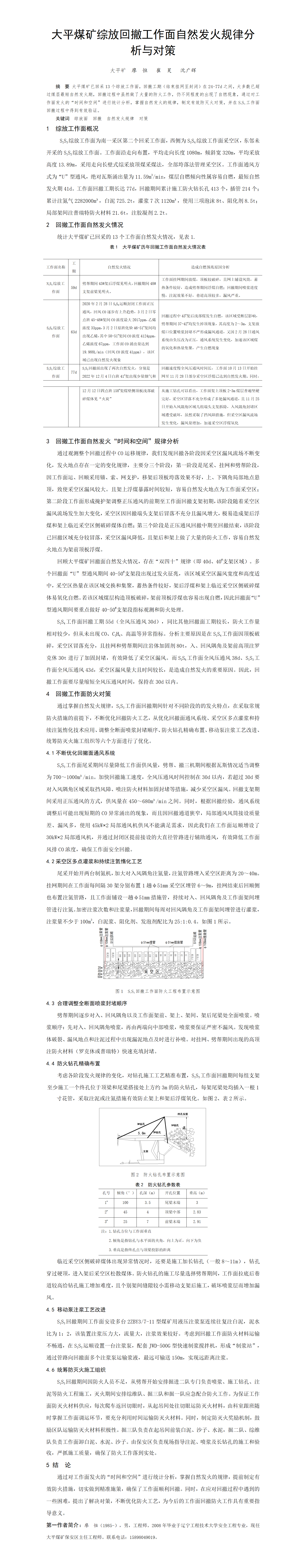 第61屆等級獎?wù)撐?--大平煤礦綜放回撤工作面自然發(fā)火規(guī)律分析與對策