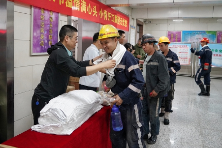 為進(jìn)一步強化職工安全意識,營造濃厚的百日攻堅安全生產(chǎn)活動氛圍,日前,小青礦在副井口開展了井口送溫暖活動。礦領(lǐng)導(dǎo)們親手為職工系上毛巾,安全協(xié)管員們將一袋袋熱氣騰騰的咖啡、牛奶,以及象征平安吉祥的蘋果遞到每一位入井職工手中,并叮囑大家“注意安全”“按章操作”,以實際行動確保實現(xiàn)百日攻堅安全生產(chǎn)活動目標(biāo)。張洪宇 攝
