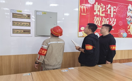 為充分發(fā)揮職工代表的積極作用,切實(shí)維護(hù)職工的合法權(quán)益,近日,小康礦組織職工代表深入到“兩堂一舍”以及區(qū)隊(duì)辦公室等地點(diǎn)進(jìn)行安全視察。職工代表對用電安全、環(huán)境衛(wèi)生、菜品質(zhì)量、消防設(shè)施以及相關(guān)記錄等方面進(jìn)行了全面視察,對視察中發(fā)現(xiàn)的各類問題,當(dāng)場提出了整改意見,并要求責(zé)任單位做到立行立改,保障職工的合法權(quán)益。 楊宇 攝