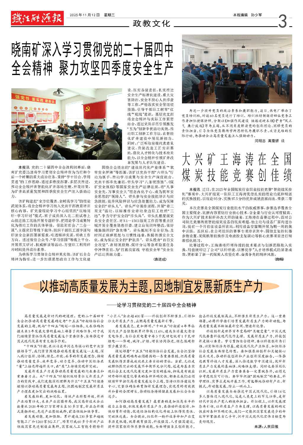 曉南礦深入學(xué)習(xí)貫徹黨的二十屆四中全會(huì)…
